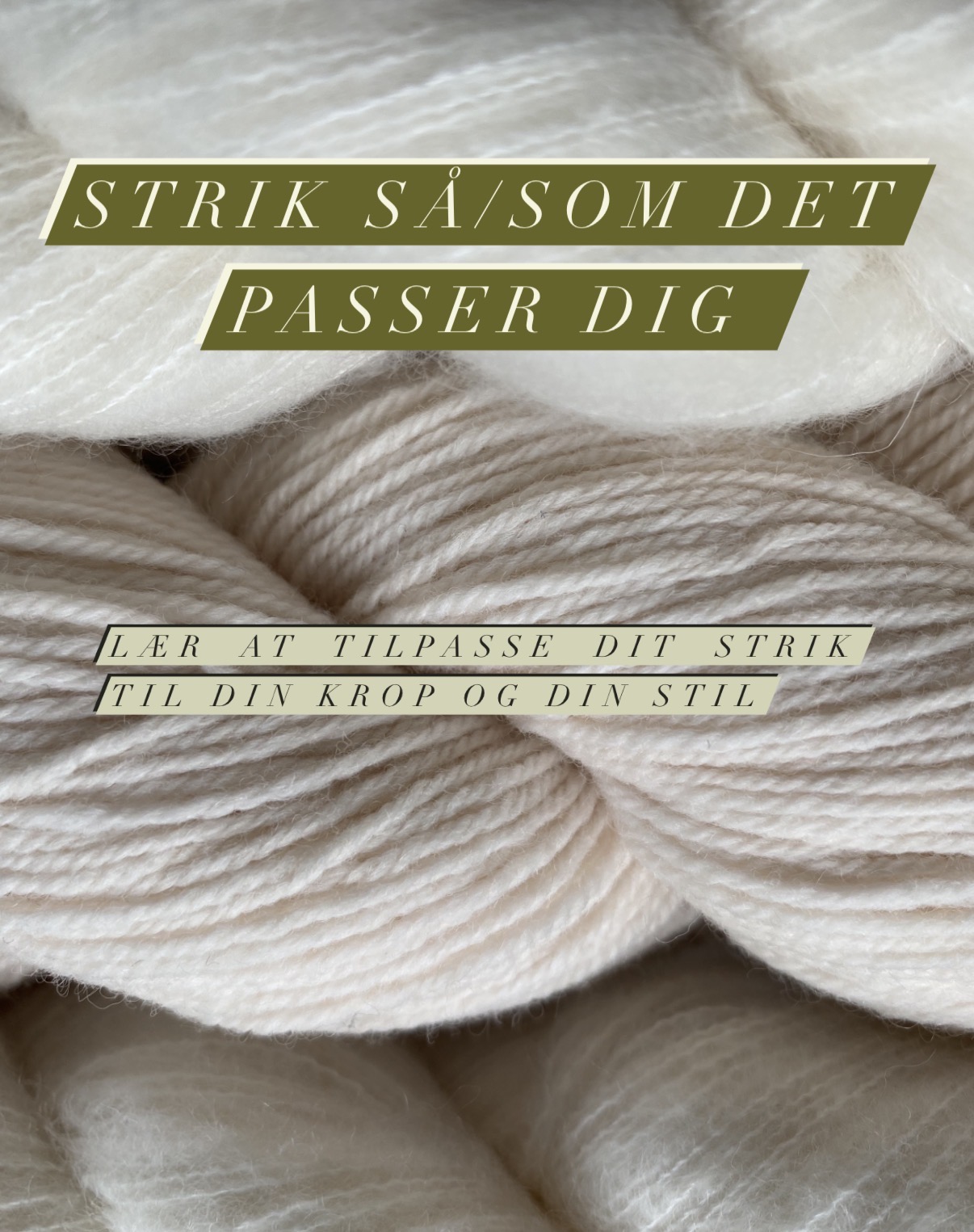 Vi starter med et oplæg på ca. 45 minutter, hvor du får mine bedste værktøjer, tips og tricks til at tilpasse strik, så det passer til dig, din krop og din personlige stil.